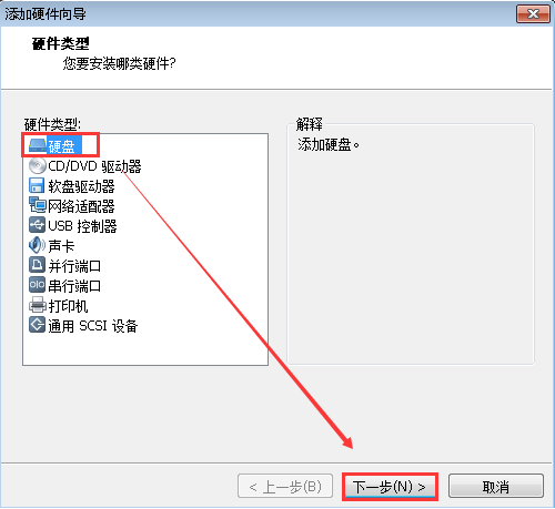 1.3选择"硬盘",点击"下一步"后一直下一步。(注意步骤1.5)