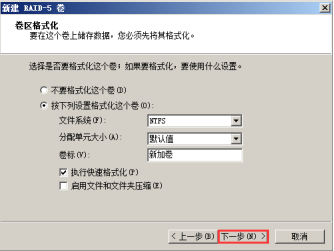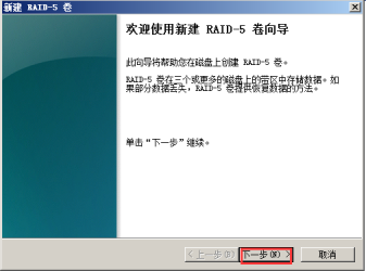2.4进入"新建RAID-5 卷"界面,点击"下一步";