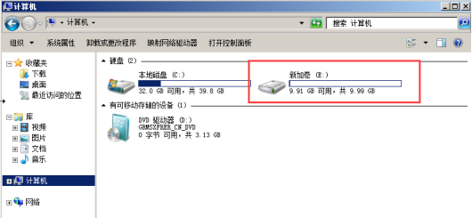 2.11打开我的电脑,显示出新建的硬盘为10G;