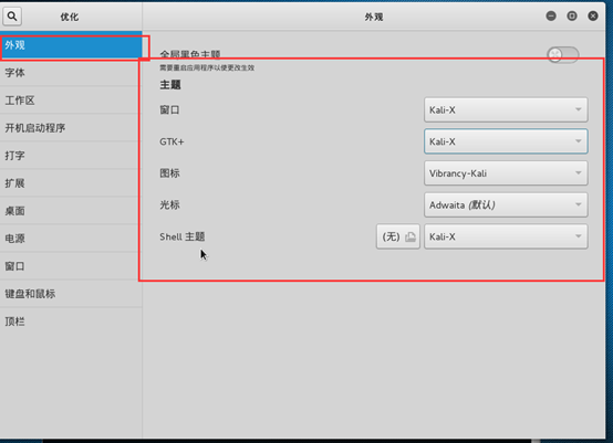 2.5对 Kali Linux 主题进行美化,首先安装 Gnome-Tweak: