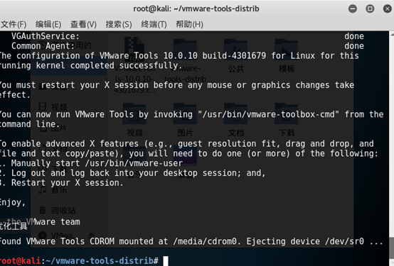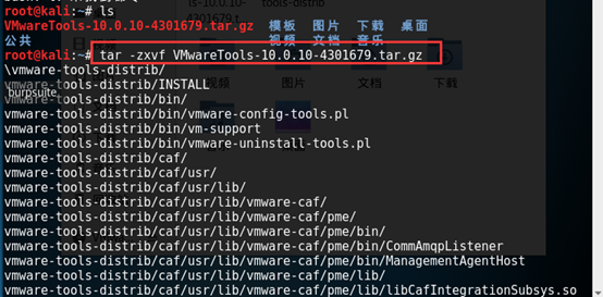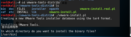 1.2将VMware—tools的安装文件复制到Kali的root目录下,打开一个 Shell 终端,使用命令查看目录内容: