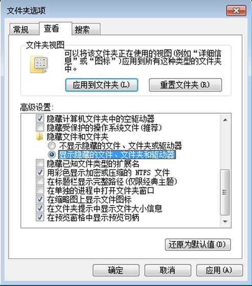 发现隐藏文件和文件夹都不显示了。