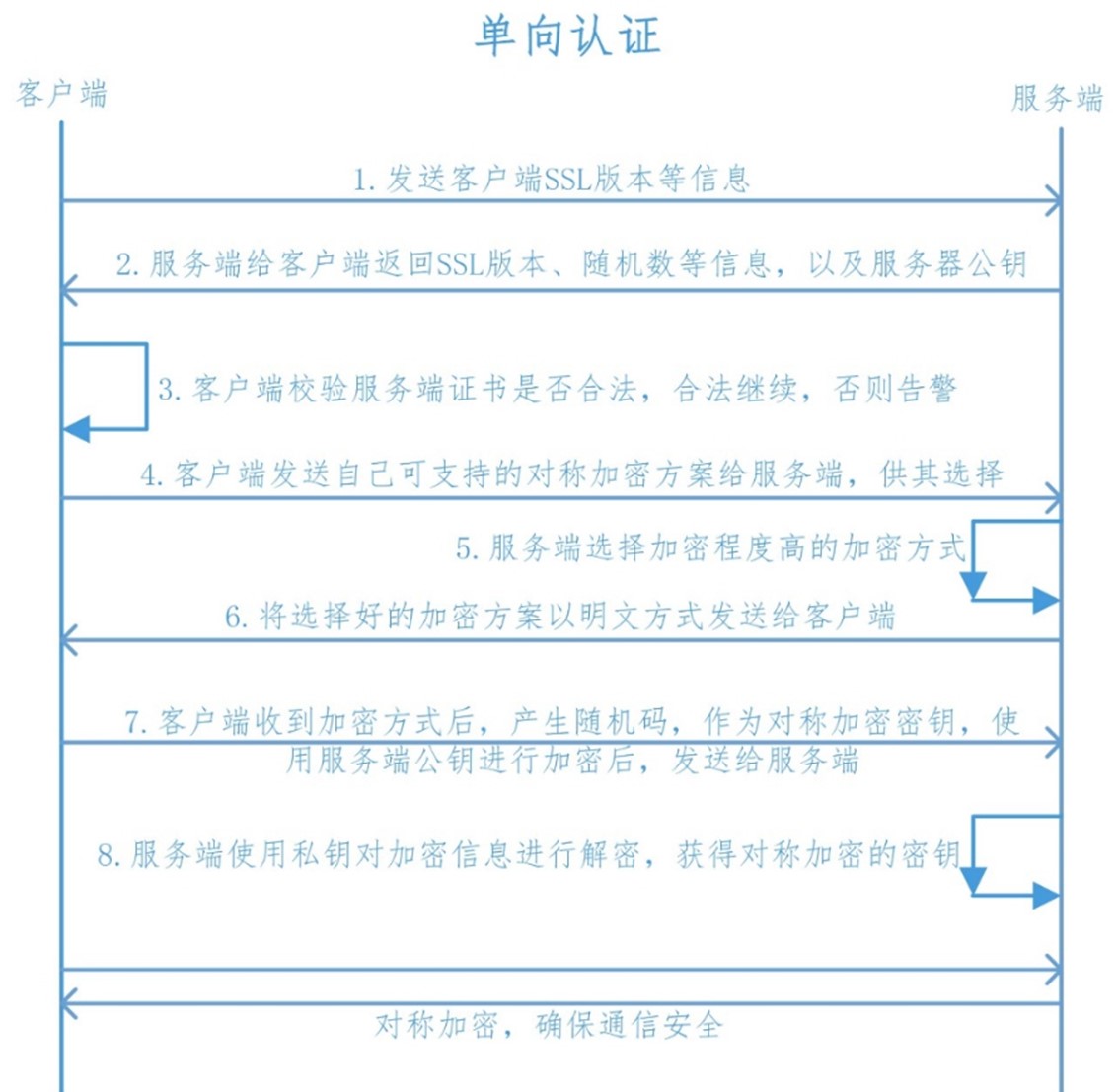 单向认证指的是只有一个对象校验对端的证书合法性。