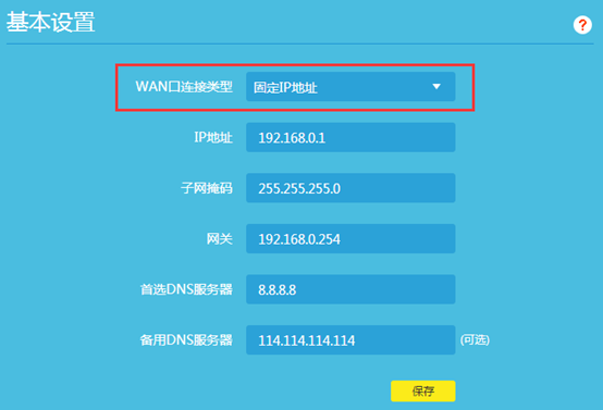 无线网络的 IP 类型要选择固定 IP 地址,即静态 IP 地址。