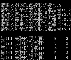 - 分别输入每条边的关联顶点编号 1,2 2,3 3,4 4,5 5,1