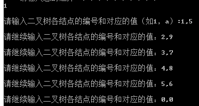 printf("\n请继续输入二叉树各结点的编号和对应的值:");
