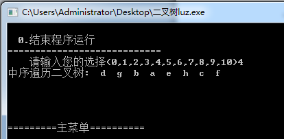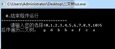 程序名为二叉树luz.exe,运行环境为MS-DOS。程序执行后显示: