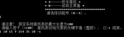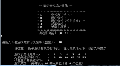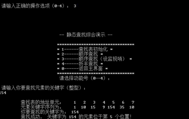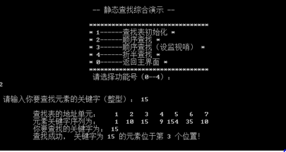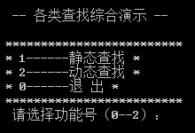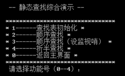 要求输入1、2、0分别进入静态查找、动态查找、退出