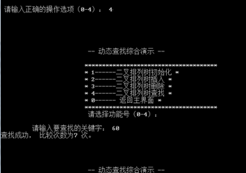 - 二叉排序树查找60,输出查找成功,并输出比较次数