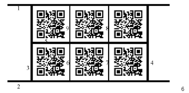 小蓝用一张纸打印出两行三列共 6 个二维码,至少使用九次裁出来,下图给出了一种裁法。